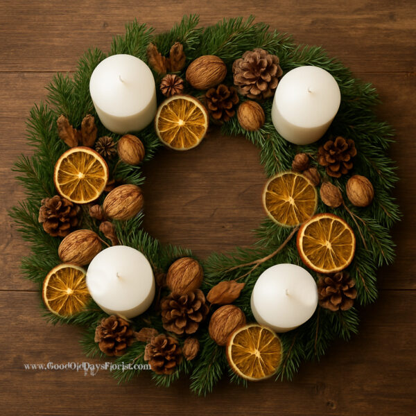Years ago, we made so many Advent wreath orders that purple & pink candles were stocked in September to prepare.  Over time I have seen a decline in so many wonderful traditions that really are a shame to be forgotten because they have the ability to hold us together.  Advent wreaths are traditionally associated with the many sects of Christian religions as to the coming of  Christmas and the days leading up to it.