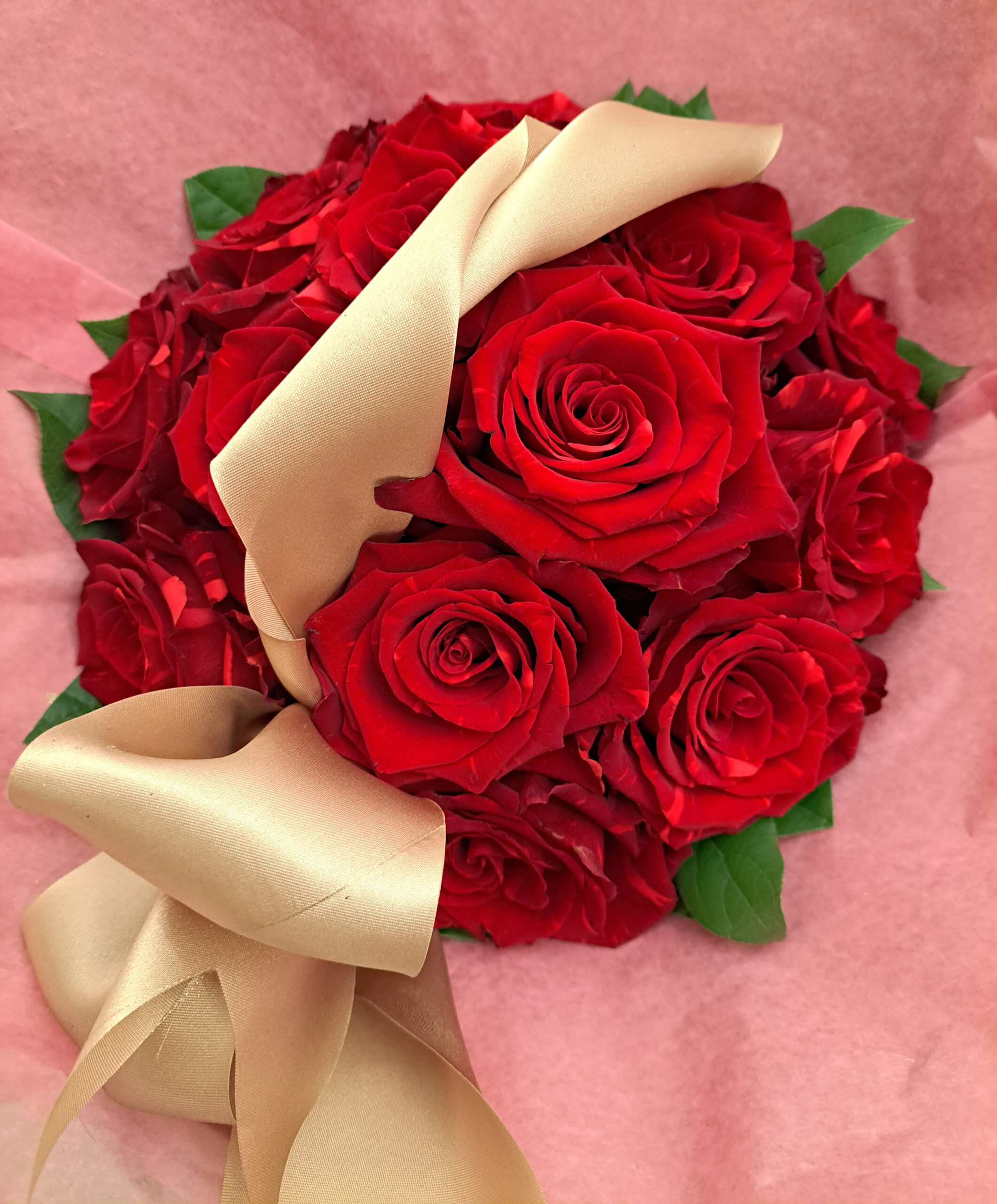 App 15-20 of our beautiful roses tied tight at the neck and fancy wrapped.